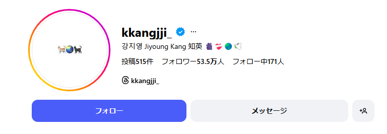 「@k_jiyoung_」が公式アカウント。フォロワー数も多く、更新頻度も高めなので、ファン必見です。